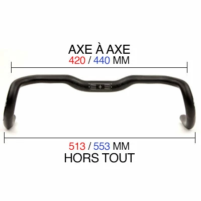 Ce modèle de cintre gravel se différencie du guidon Ergotec Randonneur simple, d’abord, par sa plus grande largeur (deux modèles au choix, à sélectionner lors de l’ajout au panier) :