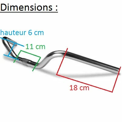 Le guidon de type moustache est parfaitement adapté pour la remise en état d’un ancien vélo ou pour donner un look vintage à un vélo plus récent. Ce guidon a une largeur de 57 cm et est haut de 6 cm. En acier chromé, il pèse 550 grammes et mesure 25,4 mm de diamètre au centre pour 22,2 mm aux extrémités.
