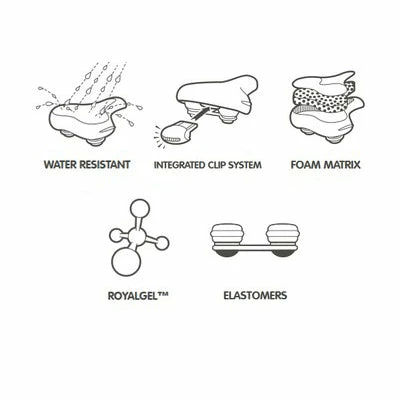 Le coussinet en gel breveté Royalgel ™ garantit un grand confort sur le siège. En effet, le rembourrage remplissant l’intérieur de la selle permet de diminuer les pics de pression d’environ 40%.