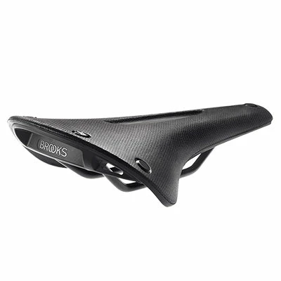 Au design contemporain et élégant, la gamme de selle All Weather est usinée à partir d’un caoutchouc naturel vulcanisé et d’un coton biologique. Première des selles de la marque à ne pas être en cuir, la selle C17 Carved Brooks est “prête à l’emploi” directement. Les nouveaux matériaux utilisés la rendent flexible et souple. Elle n’a ainsi pas besoin de se faire avec le temps comme les selles en cuir. De plus quelle que soit la météo, sous une pluie battante ou un soleil éclatant, elle est performante et ne nécessite aucun entretien. Le revêtement en nylon est waterproof et imperméable. Les rails sont en acier. La plaque arrière renforcée en fibre de verre dispose de boucles pour y accrocher une sacoche de selle ou autre accessoire.